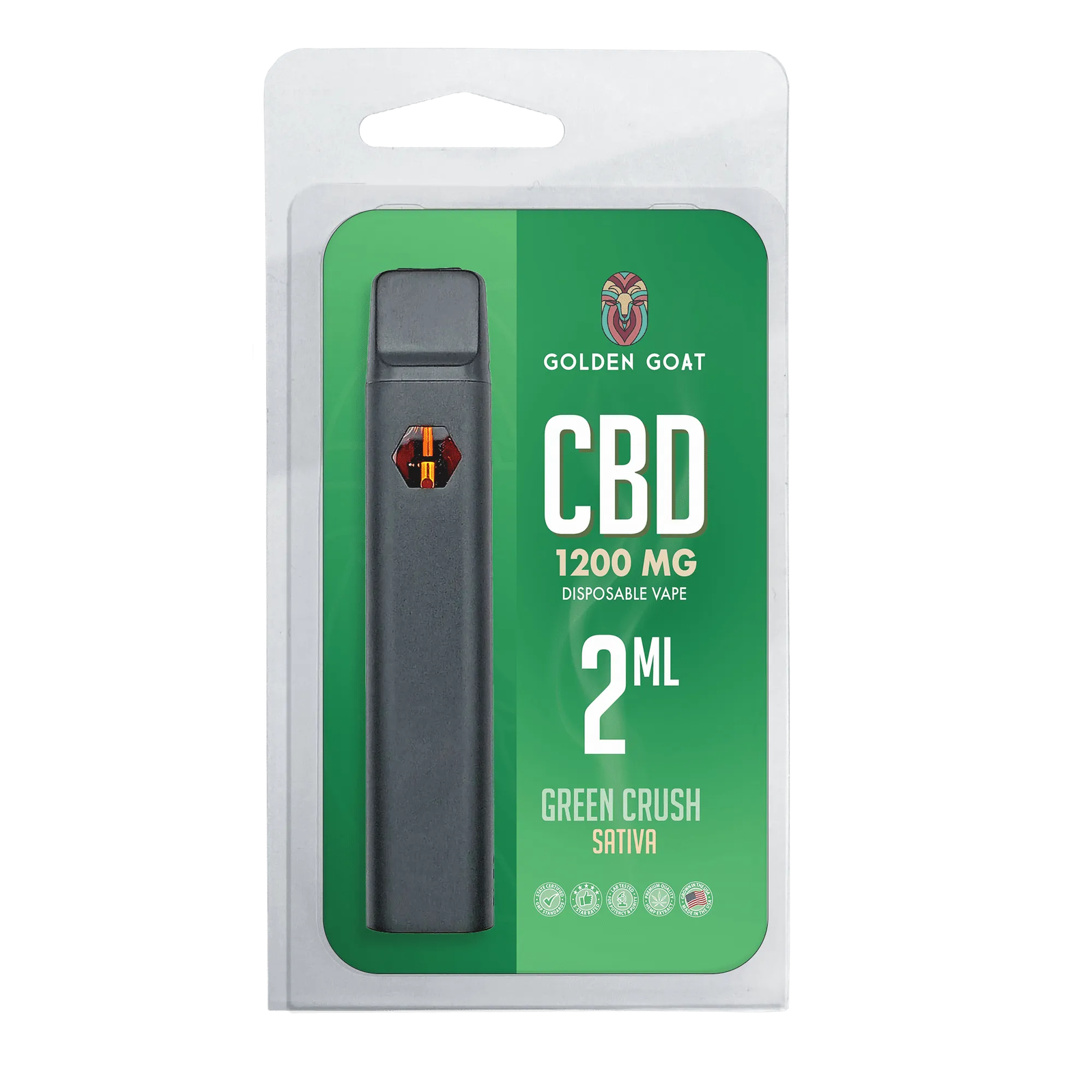 Golden Goat CBD Rechargeable Vape Device 1200MG, Green Crush (Sativa)