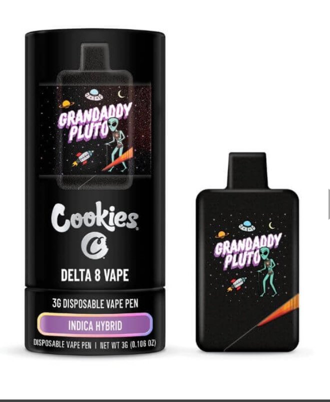 Check out the Grandaddy Pluto (Indica Hybrid) Cookies Delta 8 Disposable, offering 3 grams of delta 8 cannabinoids with terpenes for a delicious full-bodied vape to uplift the senses.